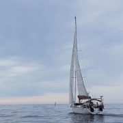 Morgenen kom med overskyet vær og en intens summing av mygg. Kjell dristet seg ut av nettet og ut på utsiden, og Kaia hørte bare et hyl og et plask😄. Utenfor var båten svart av mygg og han ble angrepet av hundrevis da han kom ut. Så han hoppet i vannet uten at det hjalp!! Det sikreste stedet var i sengen, under myggnettingen mens i funderte på hva vi skulle gjøre og lurte på hvordan våre venner i nabo-båten hadde det. Ikke før hadde vi tenkt tanken så var de på VHFen. De hadde det like ille bare uten myggnetting og heiste anker for å seile ut på åpent hav. Det var ikke mulig å være her og alle var litt desperate. Vi kledde oss fra topp til tå og fulgte etter ut på havet for å «kjøre av» udyrene.