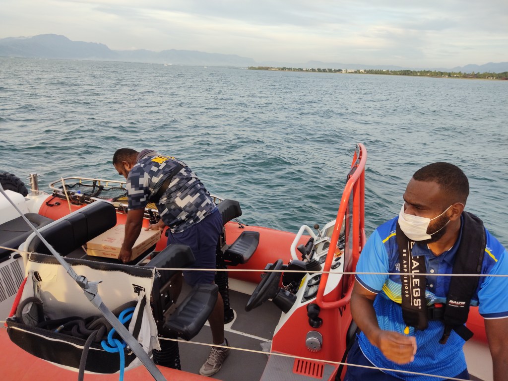 We arrived in Fiji in the middle of the night after 16 days, and dropped anchor at the quarantine anchorage outside Denerau. We ware thrilled to finally have arrived in Fijo, and were looking forward to waking up the next morning after a good night of sleep. The check in procedure took three days, and it was a very long three days at anchor. The authorities were constantly out in the boat, they wanted to see papers, take covid tests, pick up rubbish and go through all the food on board. There are strict requirements for what you can bring into the country, and the fresh fruit and vegetables and all pork, canned and frozen as well, are confiscated. They even brought us pepperoni pizzas, which was ust what we neede after 18 days of boat-food.