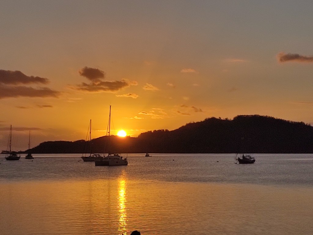 Vi hadde laget ferdig og fryst ned mange middager, vi hadde kjøpt en anselig mengde tax-free brennevin, fylt båten med tørrvarer og hermetikk og hatt masse avskjeder med gode venner vi er redd vi aldri kommer til å se igjen. Det er med tungt hjerte vi heiser anker for siste gang etter over to år i dette vakre paradiset.