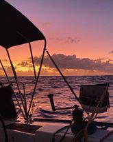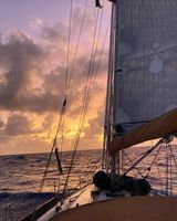 We started in the middle of the day, the first 2 days with little wind and a bit of motoring, but then wind on a broad reach up to 30 knots and distances per day of 170 to 190 nm!