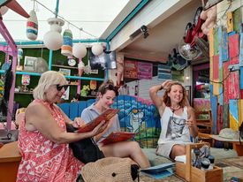 We took a trip to Ile des Pins together with Julian and Lyn from Domini, with whom we have been sailing since Tanna. This is an island right out on the reef. With a ferry going 28 knots took the trip 2.5 hours and a tired public Toyota bus took us on a tour of the island and to Baie de Ugo, where there is a nice bathing spot in a protected area. Back to the boat after another 2.5 hours and with only 2 simple paninis to eat during the day, it was early to bed, a little hungry. The next day was a public holiday, but we are in «France», so of course the local Shell station had freshly baked baguettes for breakfast with French cheese that we had bought in earlier.